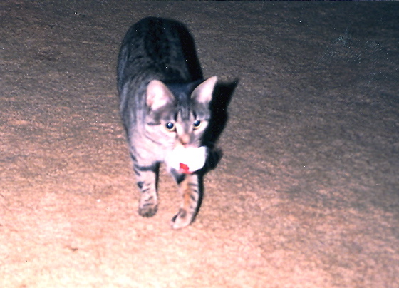 My niece Diana, who was 4, loved this kitten. They would rub their faces together and purr. She wanted to call her Snuggles, and it stuck. Diana, who lives next-door, and Snuggles grew up together. The next year I got Fluffy for a companion when Snuggles started getting into all the plants and keeping me awake all night climbing the walls. The two became fast companions.